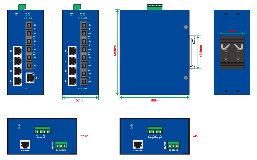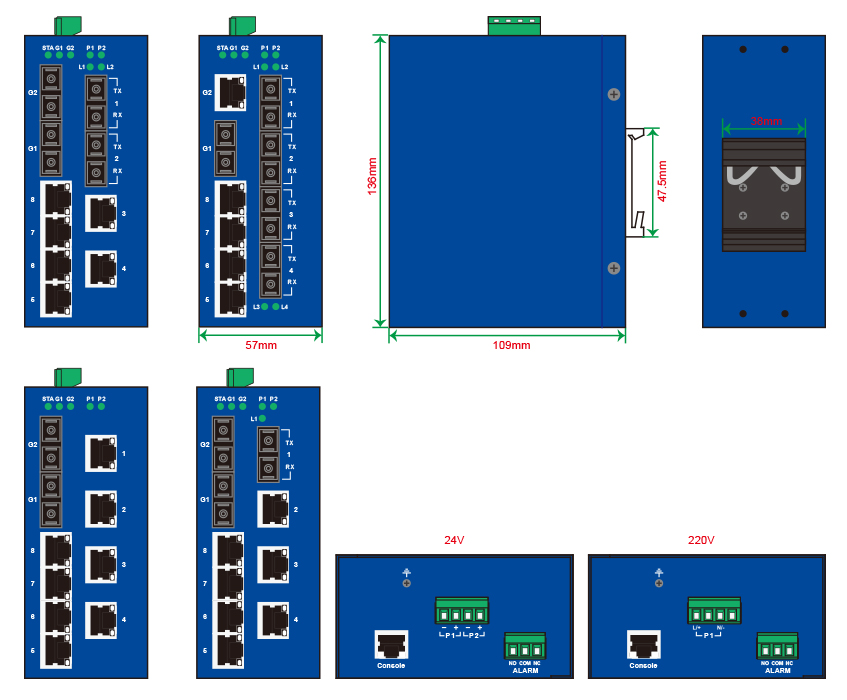 • 最多可支持8個百兆電口或者2個百兆SC/ST光口