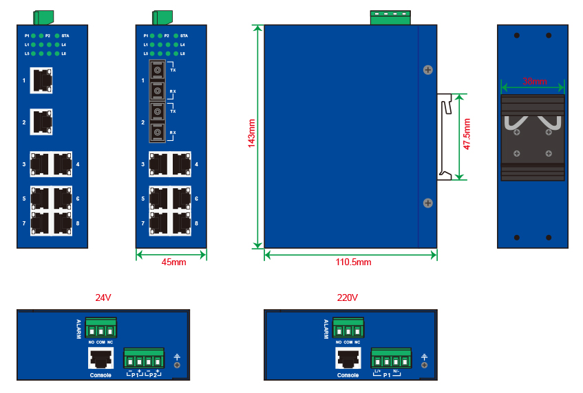 百兆光口 最多8個百兆光,SC/ST/FC可選