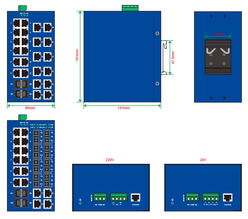 百兆光口 最多8個百兆光,SC/ST/FC可選