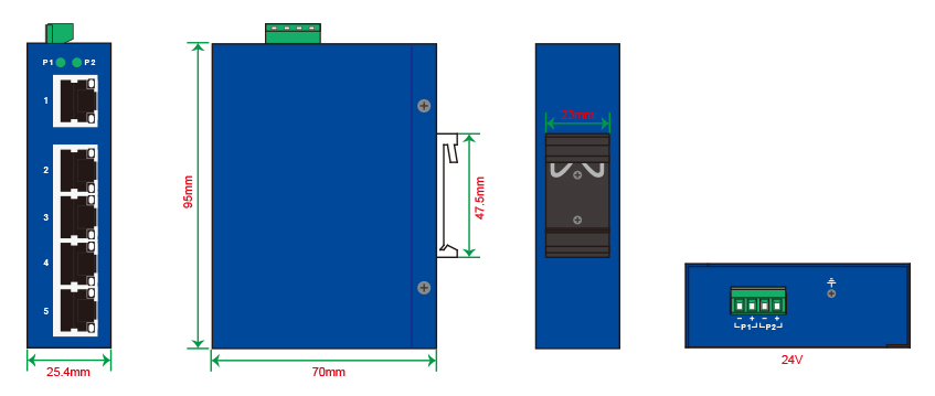 尺寸 25.4(W) x 95(H) x 70(D) mm
