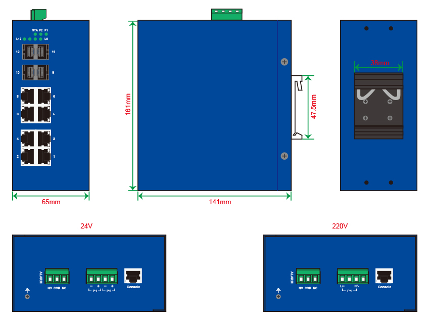 MX12GM系列全千網管型導軌式工業級以太網交換機,支持8個千兆電口和4個千兆SFP插槽。管理功能齊全,包括QoS 、VLAN 、IGMP Snooping/GMRP、 Port Trunking、SNMP V1/V2/V3等。RSTP/STP/MSTP/EAPS等多種冗余保護協議,提高了網絡的可靠性和互通性。寬溫設計,強抗電磁干擾能力,非常適合組建全千交換網絡。