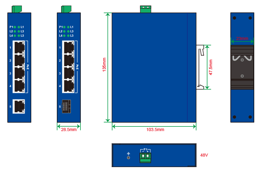 MX5P-5T2SFP非網管型工業以太網交換機,4個百兆電口支持PoE+技術,每個端口輸出功率高達30W。導軌安裝,電源提供過載和反接保護。可選寬溫型號,強抗電磁干擾能力,完全滿足苛刻的工業應用環境,為工業現場提供經濟可靠的網絡接入。
